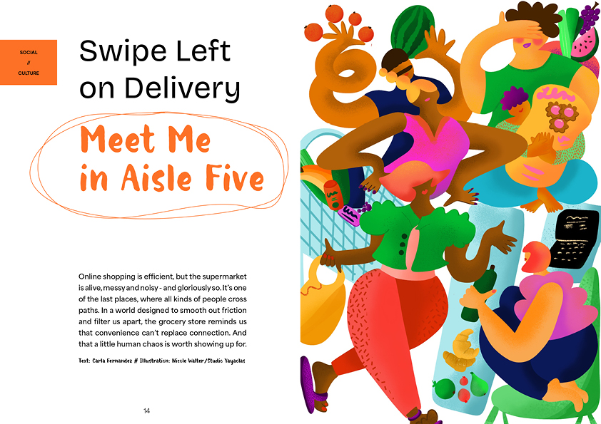 Uno de ellos explora la tienda de comestibles como uno de los últimos verdaderos crisol de culturas. Es ruidosa y a veces caótica, pero también mucho más enriquecedora que el aislamiento de las compras en línea. Porque las relaciones humanas reales alimentan nuestro bienestar.